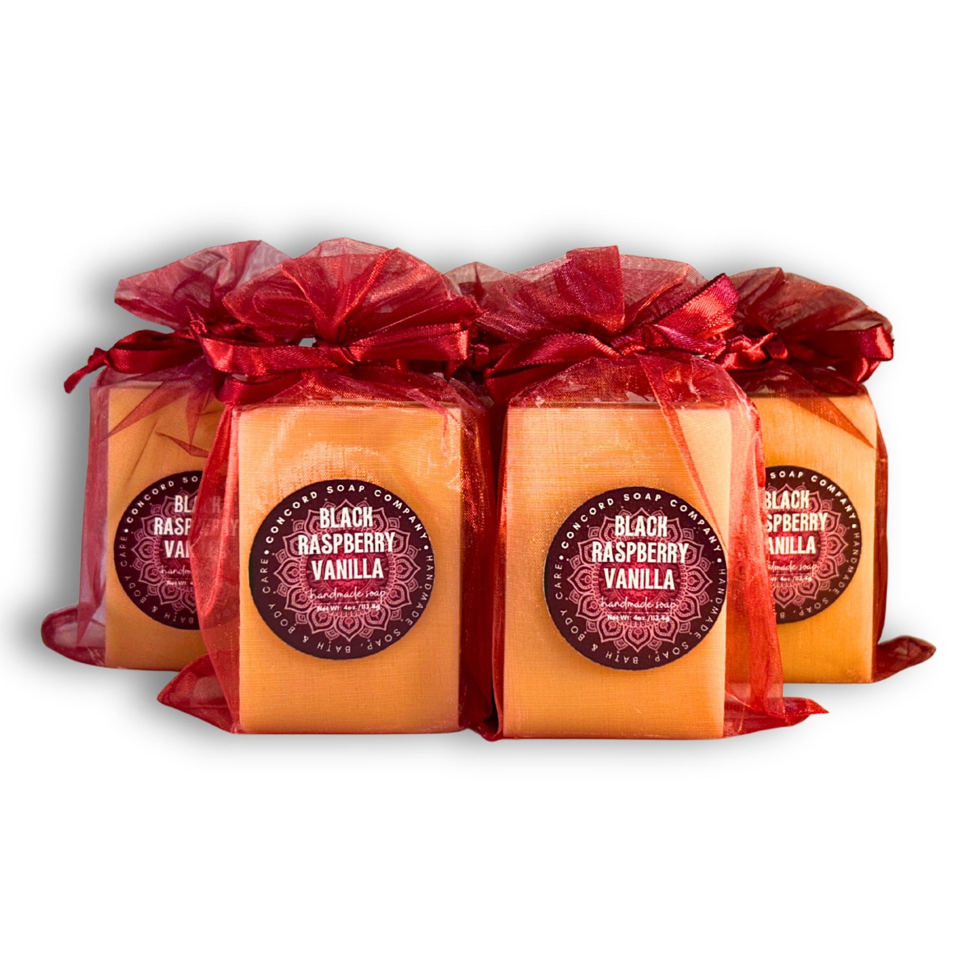 Our Black Raspberry Vanilla Soap is handmade in small batches to focus on quality! We use the cold process method and superior ingredients. Each is hand cut and allowed to cure for approximately 4-5 weeks. Our Black Raspberry Vanilla Soap is packaged in a burgundy organza bag. Since it will retain some of the sweet fragrance, we encourage you to reuse the organza bag for something wonderful!