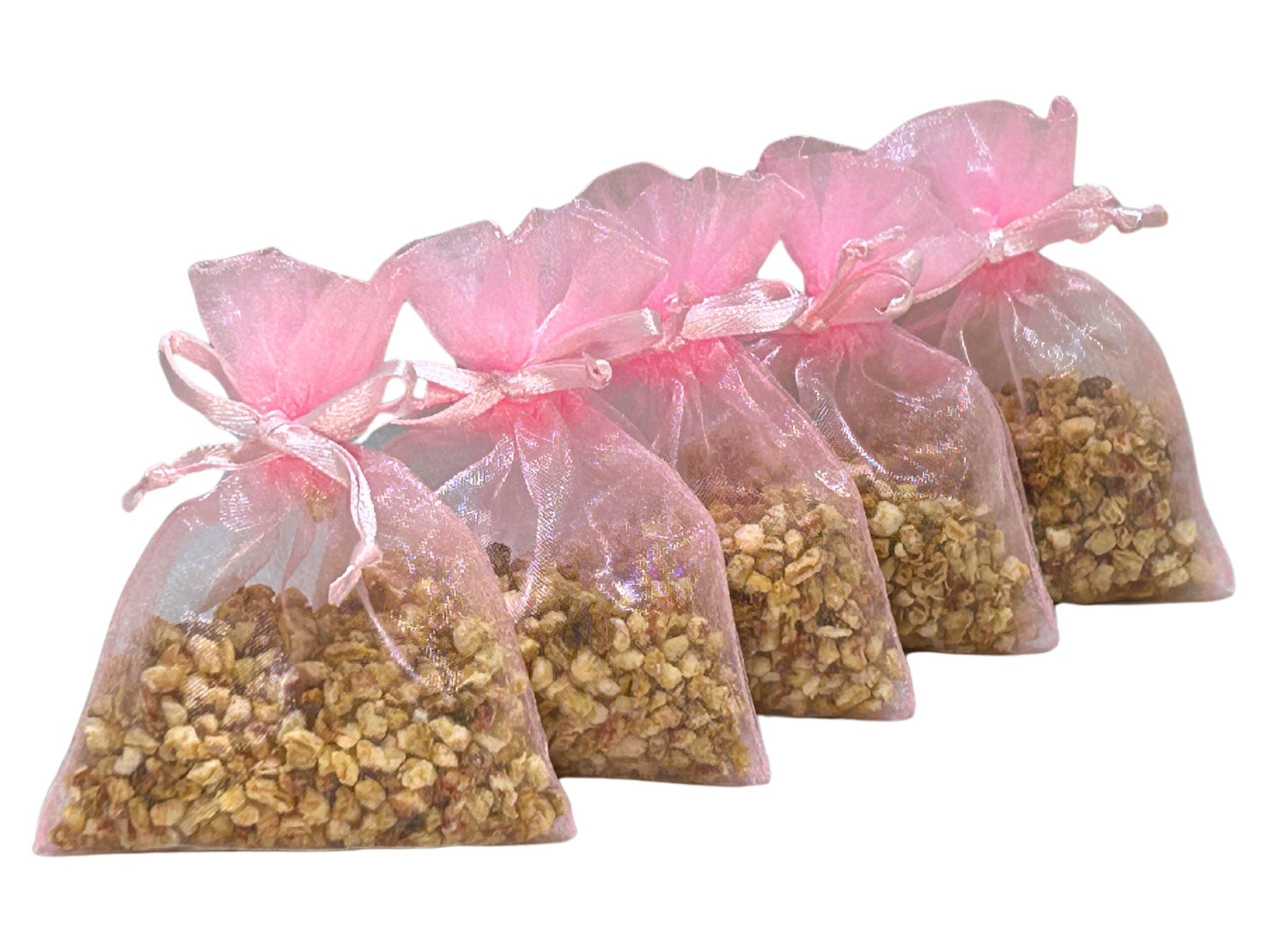 Our sachets are scented to last for a long time. We've had customers report back to us over a year after buying to say that it is still going strong! Our Japanese Cherry Blossom sachet is a pink organza bag filled with scented material.